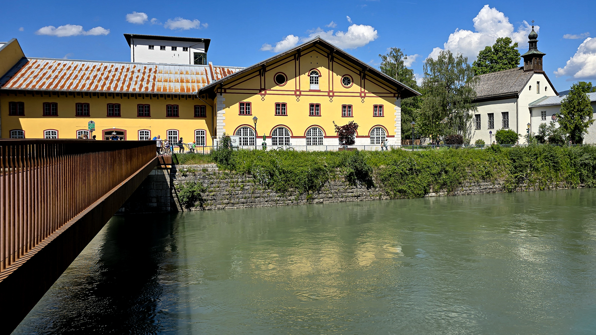 Für Fotografen – egal ob mit Kamera oder Smartphone unterwegs – ist die Pernerinsel ein Ort voller Überraschungen. Schon der Weg über den Pfannhausersteg ist ein Erlebnis: er führt euch vom Keltenmuseum auf der einen Seite zur Alten Saline auf der anderen Seite.